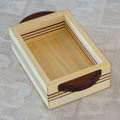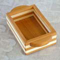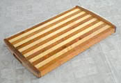 Tarjotin on valmistettu lämpökäsi- tellystä koivusta. Mitat: leveys 150 mm, korkeus 75 mm ja pituus 310 mm.