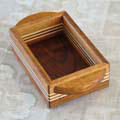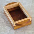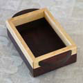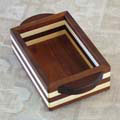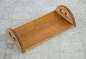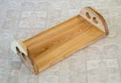 Tarjotin on valmistettu pihlajasta. Mitat: leveys 150 mm, korkeus 75 mm ja pituus 310 mm.